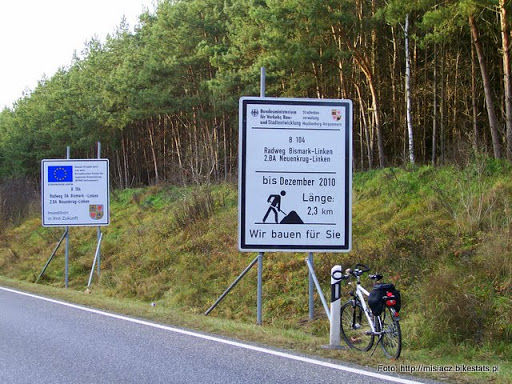 Stamtąd pojechałem do Bismark, gdzie skręciłem w lewo i dojechałem do Gellin. Z Gellin ponownie skręt w lewo i jazda do Grenzdorf. Jadąc cały czas prosto dotarłem do brukowanej drogi na Grambow, która w tejże miejscowości jest zamknięta z powodu remontu.